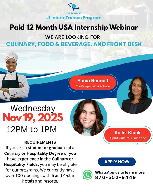 Join Rania Bennett (The Passport) and Kailei Kluck (Spirit Cultural Exchange) to learn about the J1 Intern/Trainee Program requirements for students and graduates of Culinary/Hospitality fields, or experienced professionals.